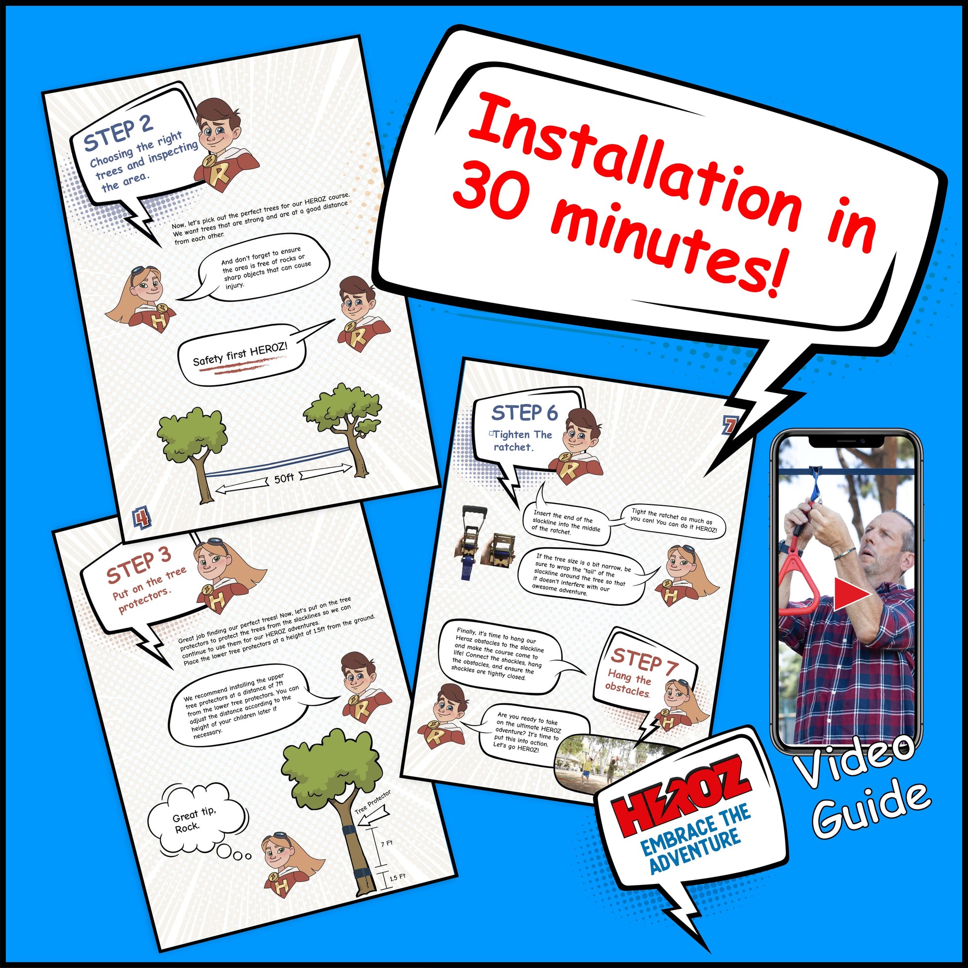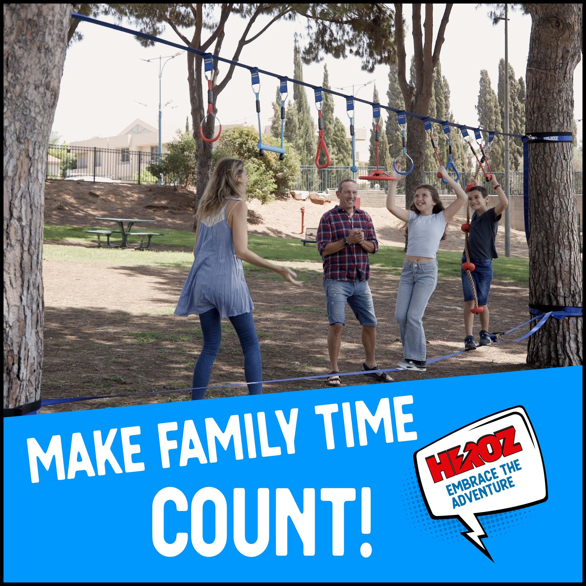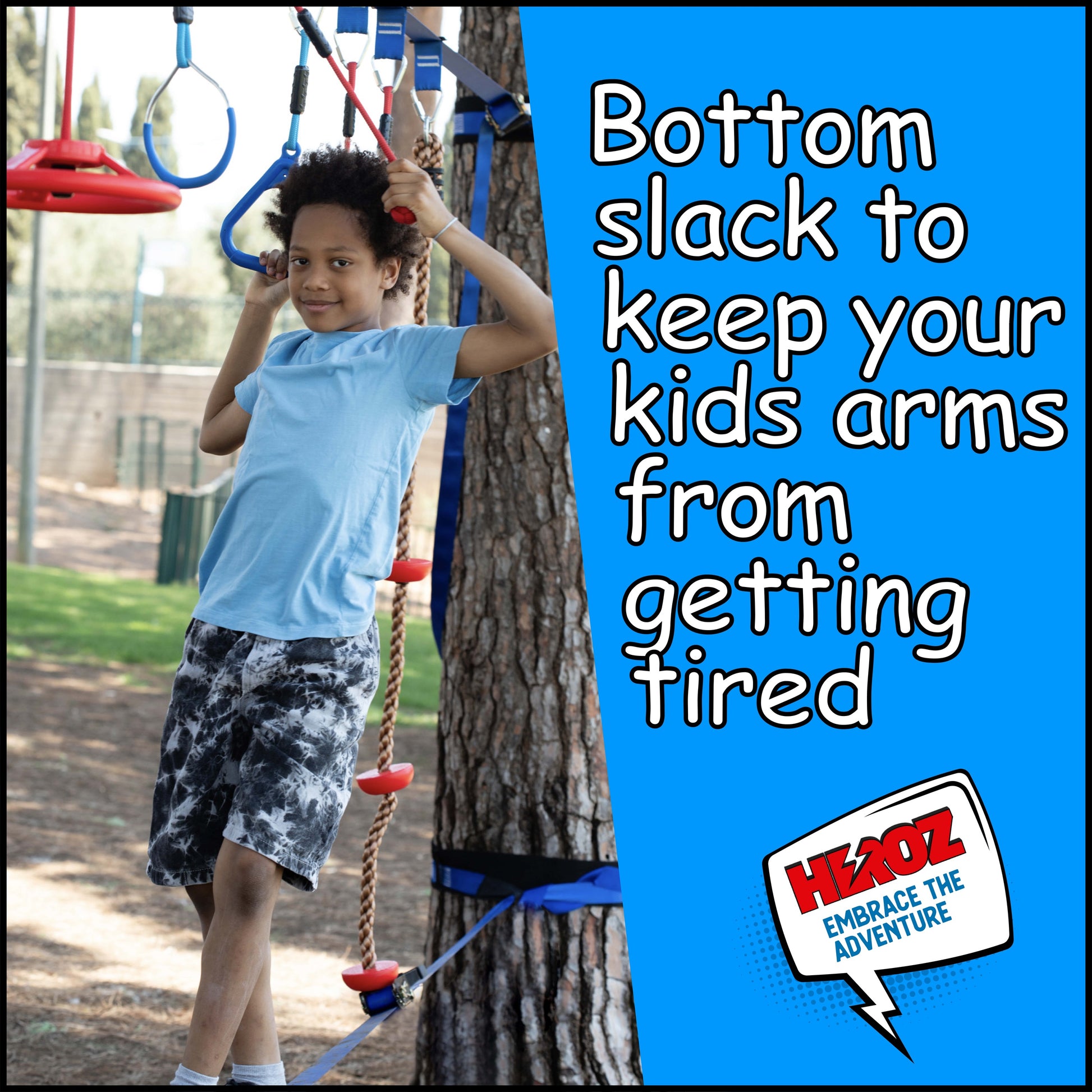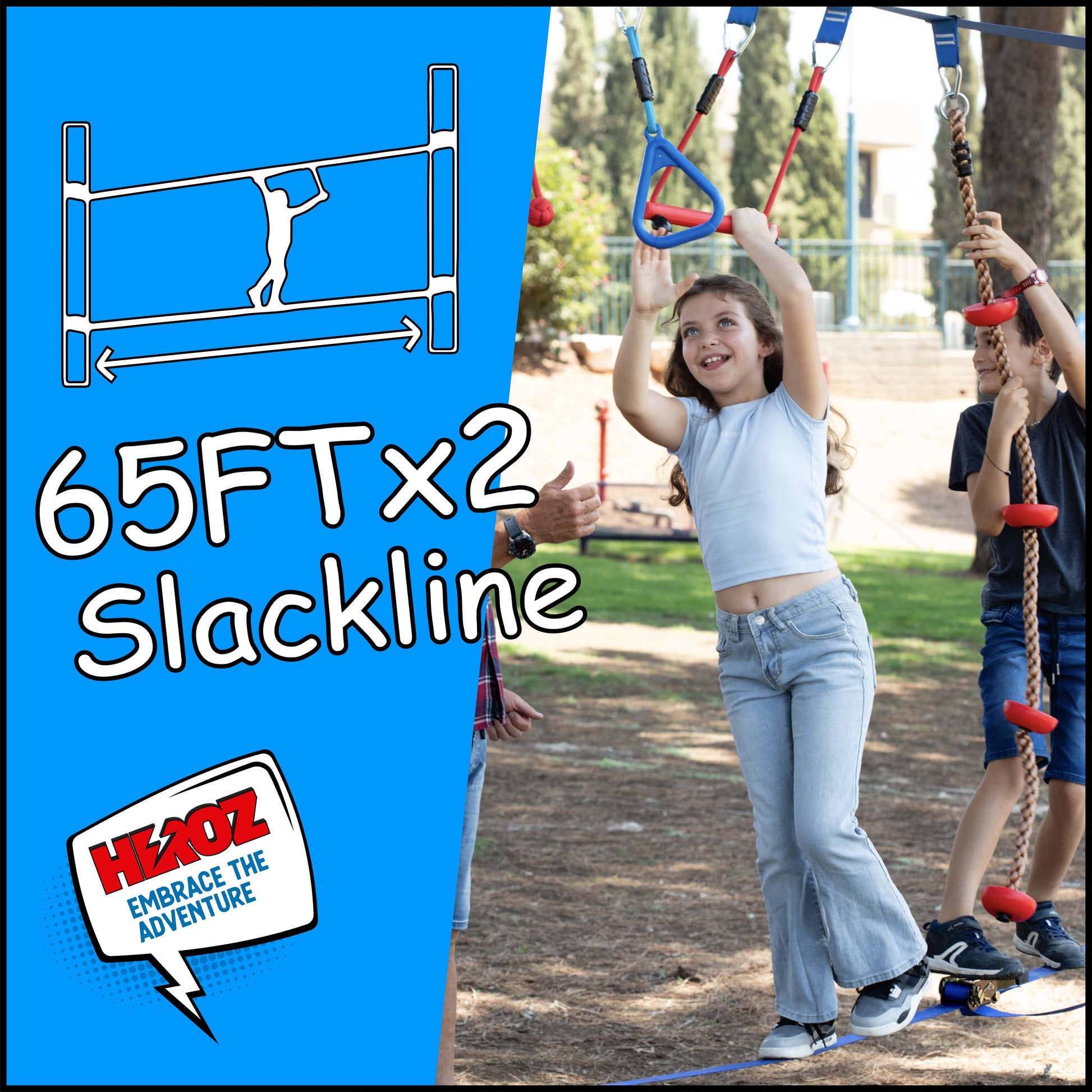 Heroz Obstacle Course for Kids - Ninja Warrior Obstacle Course for Kids Outdoor Play Equipment 65ft Double Slackline, Monkey Bars, Wheel, Climbing Rope - Jungle Gym Ninja Course for Kids Outside